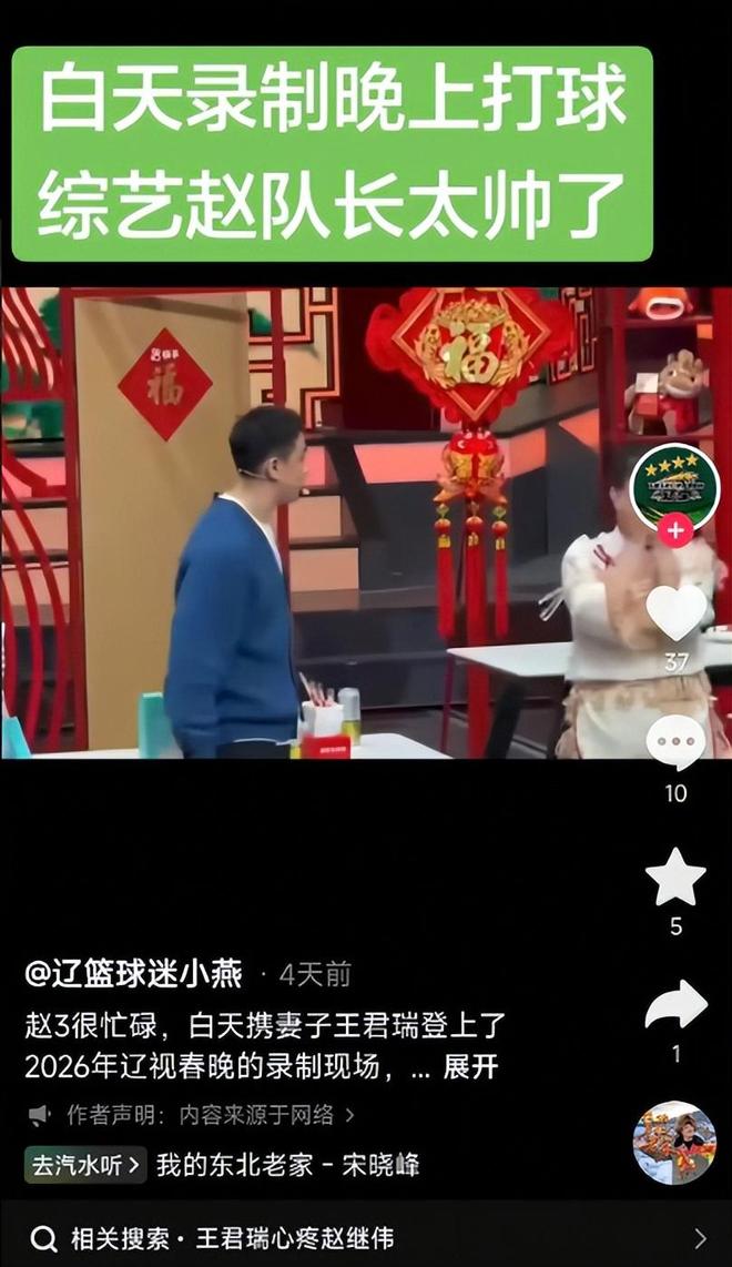 不管怎么说,球员只要不影响自身训练和比赛,去参加一些商业活动并不是什么大不了的事情,何况录制春晚这种事之前很多辽宁球员都参加过。近日,辽宁男篮后卫赵继伟参加了辽视春晚的