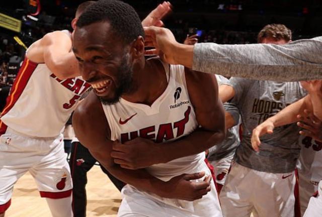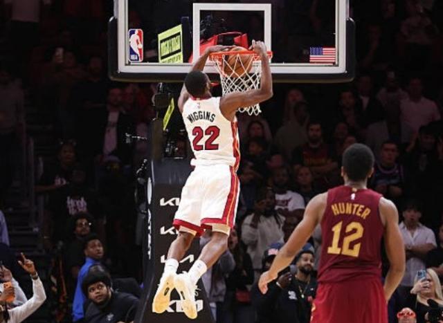 不过,热火在最后一个回合跑出了完美的战术。维金斯与小米切尔在罚球线位置设立了电梯门掩护,鲍威尔随后鱼贯而出冲向中圈。就在骑士众人的注意力被吸引之际,维金斯突然启动,借助小米切尔的掩护冲向篮筐。边线发球的约维奇心领神会,甩出的传球越过米切尔的干扰,精准找到已经完成起跳的维金斯,嘴哥在没有干扰的情况下完成绝杀一气呵成。