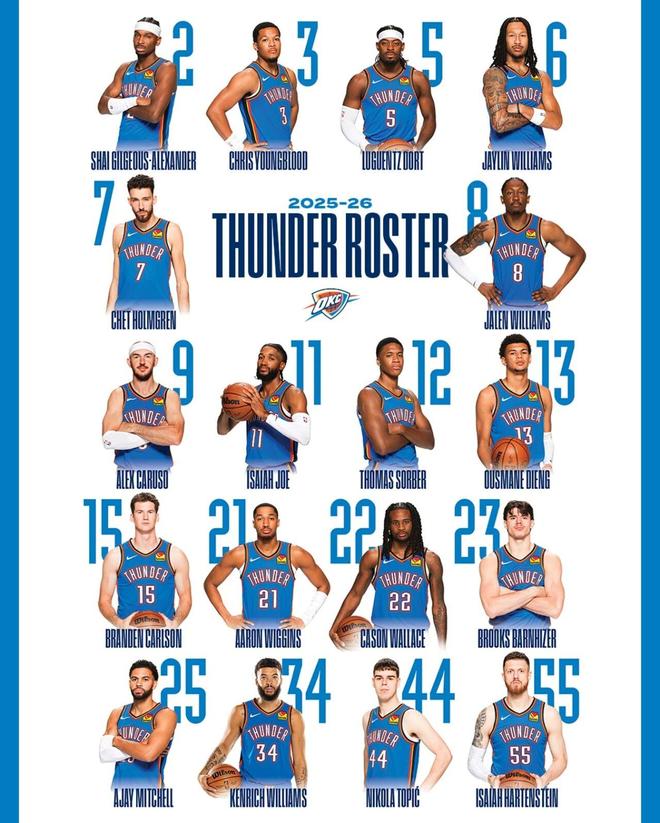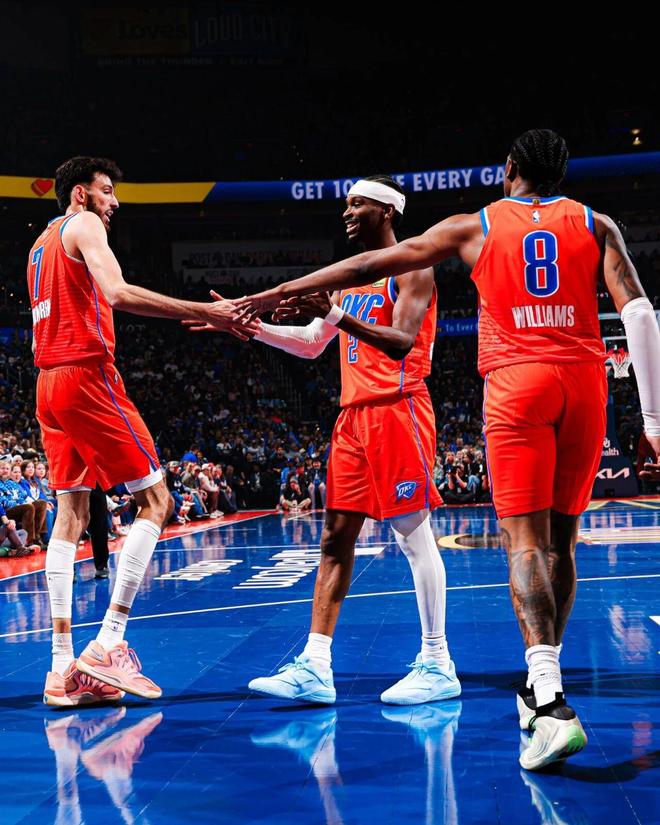 另一方面,雷霆理想化的状态是,等球队在赛季中段伤员回归,全员健康的他们拥有全联盟最好的阵容深度,在最富裕的状态下甚至可以排出一套相当强力的12人轮换阵容。