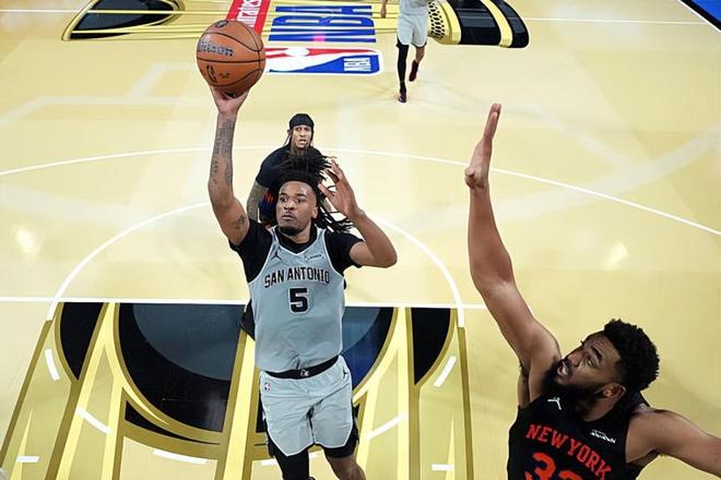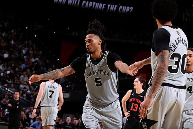 在此前的NBA杯决赛中,纽约尼克斯在末节完成了大逆转,以124比113战胜了圣安东尼奥马刺,成功拿到了本次NBA杯的总冠军。本场比赛中,马刺的先发得分后卫斯蒂芬-卡斯尔(Stephon Castl