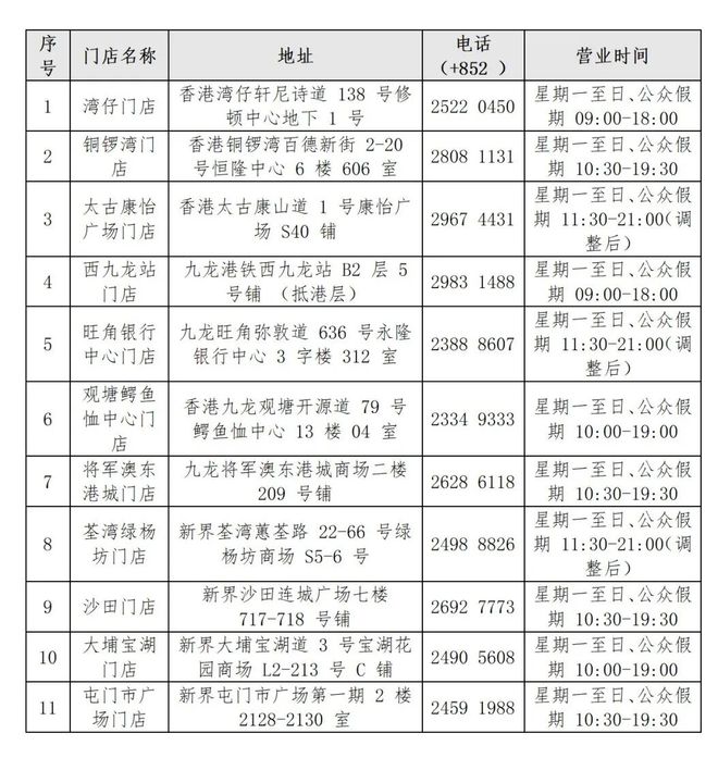 香港中国旅行社11家网点信息(仅销售香港赛区门票)