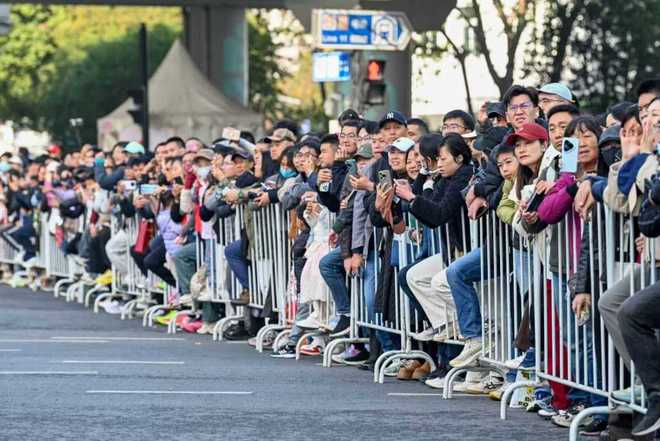 上马的沿途观众越来越多,也越来越懂马拉松。 澎湃新闻记者 朱伟辉 摄