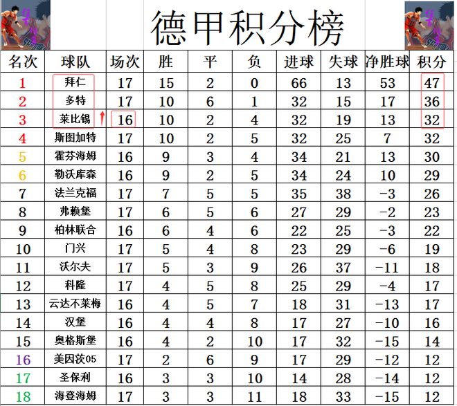 德甲最新积分战报拜仁逆转3连胜又领先多特11分莱比锡重回前3