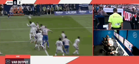 在昨天晚上进行的西甲第7轮比赛中,马竞主场5-2击败皇马,其中朗格莱在上半场打入一球,但因为手球在先进球无效,赛后,主裁判和VAR之间的对话被披露。第42分钟,当时皇马以2-1领先,朗格