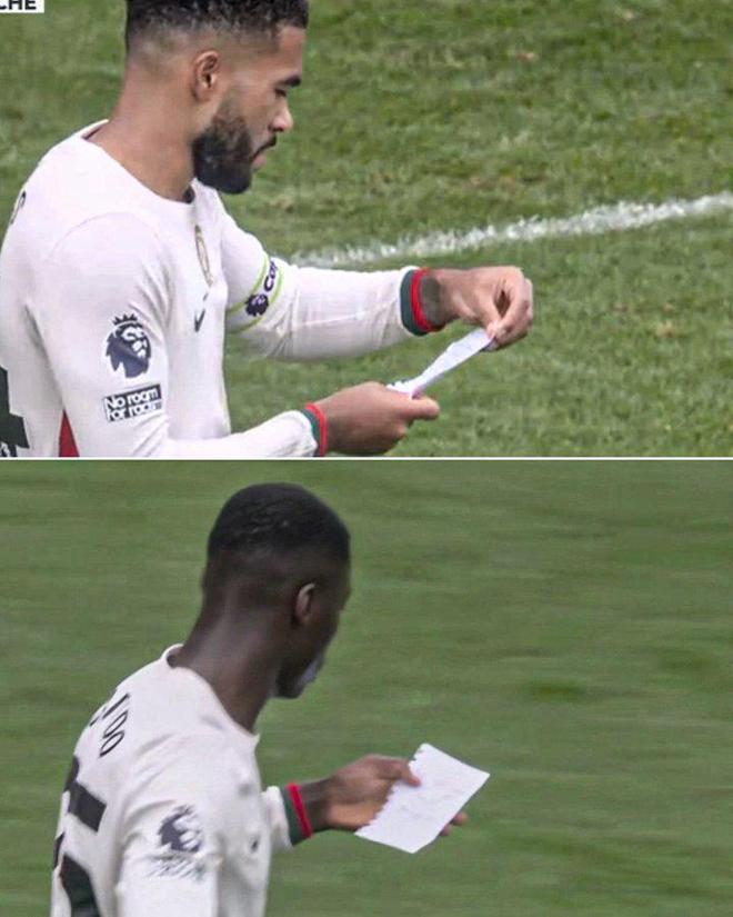 雷速体育10月19日讯 切尔西与诺丁汉森林的比赛进行到尾声阶段,场上比分2-0。导播镜头发现,切尔西的核心球员陆续收到来自教练组的战术小纸条。国外切尔西球迷热议:詹姆斯需要