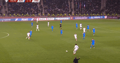攻势不减的法国队,在第42分钟再次叩开了阿塞拜疆的球门,可惜埃基蒂克手球在先,导致凯夫伦图拉姆的进球,被主裁判无情吹掉,不过半场比赛结束之前,法国队还是扩大了领先优势,右侧角球开出后,造成阿塞拜疆球员自摆乌龙,高卢雄鸡带着3-1的优势,回到了中场更衣室。
