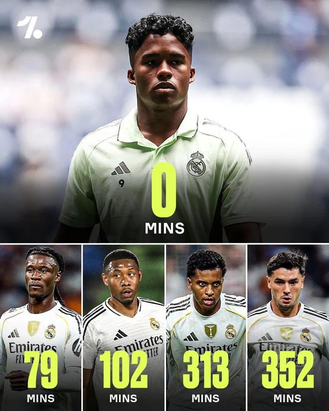 但阿隆索的到来彻底改变了局面。受肌肉伤病困扰,恩德里克错失了世俱杯的比赛。再加上皇马锋线竞争异常激烈——维尼修斯、姆巴佩、罗德里戈、迪亚斯、马斯坦托诺、贡萨洛-加西亚——巴西小将彻底失去了位置。本赛季,他5次进入大名单(4场联赛、1场欧冠),却没能获得1次登场机会。