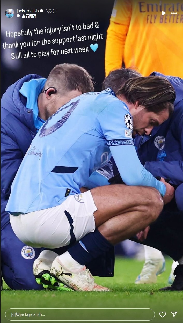 格拉利什发文谈伤情:希望不是太严重,下周我们仍能竞争晋级