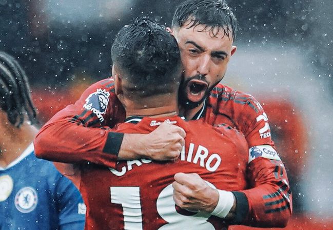 此番曼联主场面对切尔西时,在对手早早少打一人的情况下,由B费和卡塞米罗联袂建功,取得2-0的优势。在卡塞米罗身背2黄,双方皆以10人应战的情况下,曼联虽然在下半时遭到对手反扑,但仍然以2-1的比分笑到了最后,获得了关键的三分。