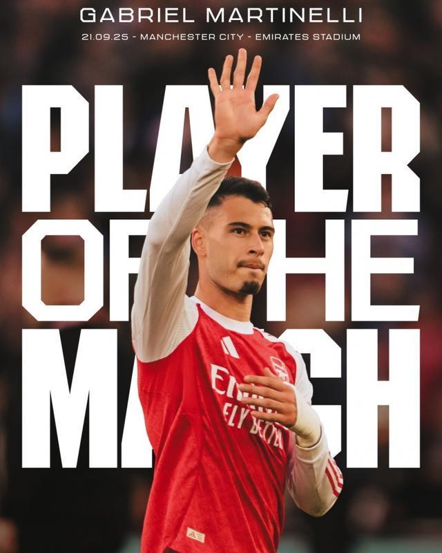 此役马丁内利替补出场,补时阶段攻入绝平进球,阿森纳官方宣布,他当选本场比赛阿森纳队内最佳球员。