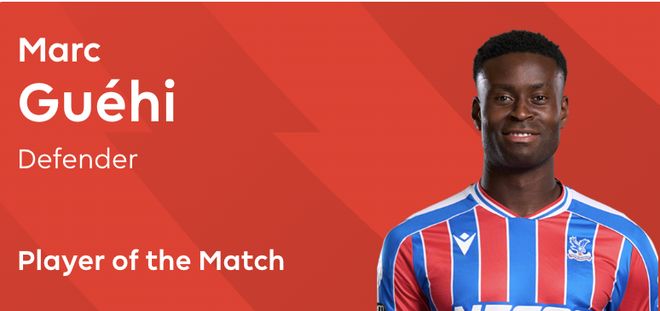 赛后,为绝杀球送出助攻的水晶宫后卫格伊以27%的投票占比获得全场最佳。