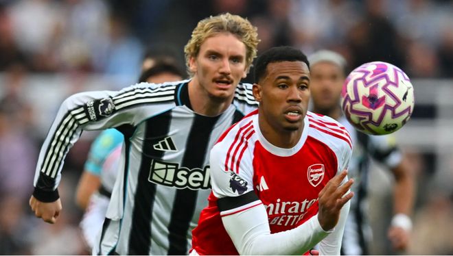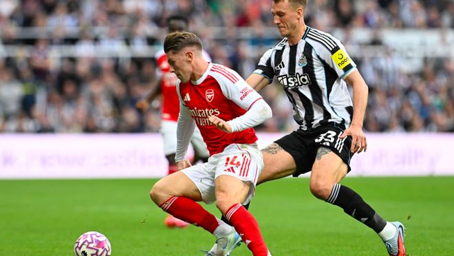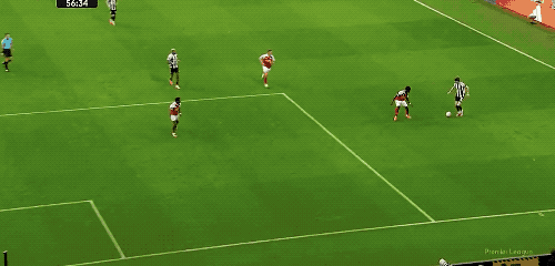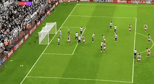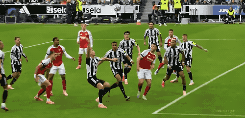 第34分钟,纽卡斯尔以其人之道还其人之身,利用战术角球,托纳利传中,沃尔特马德力压加布里埃尔,头槌破门。