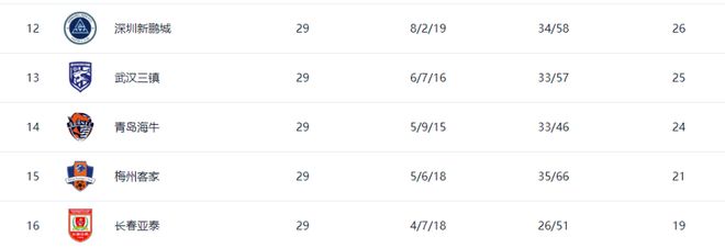 战胜武汉三镇之后,青岛海牛29轮之后以24分排名第14位,逃离降级区,有望完成保级目标。